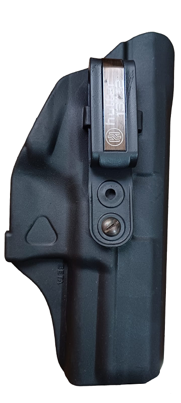 Entre suas características: Ambidestro, ranhura interna para fácil saque, reforço do clip de cintura, intercambiável para várias marcas de pistolas e revólveres, conforto durante o uso, excelente opção para uso prolongado e sem danos aos equipamentos
